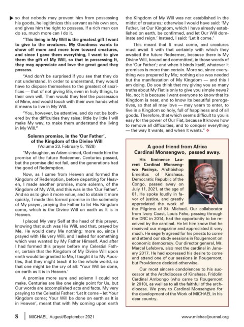8 MICHAEL August/September 2021 www.michaeljournal.org